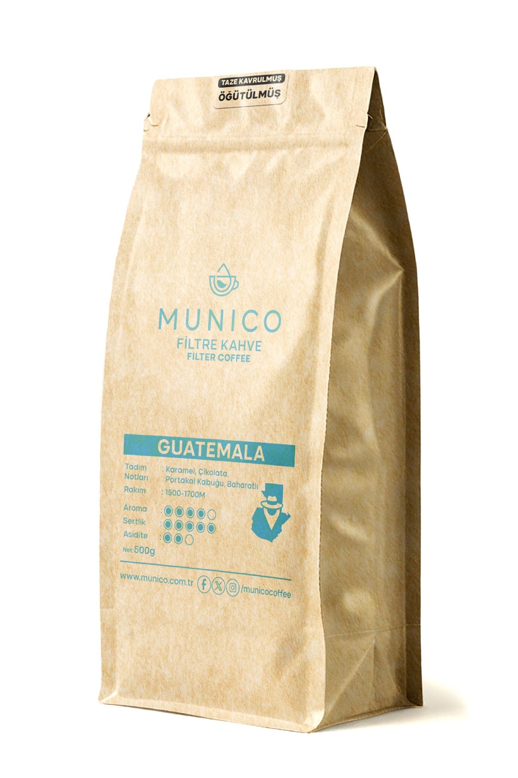Munico Guatemala Öğütülmüş Filtre Kahve, Guatemala'nın 1500-1700 metre yükseklikteki seçkin bölgelerinden gelen çekirdeklerle hazırlanmıştır. Karamel, çikolata ve baharatlı notalarıyla kompleks ve dengeli bir tat profili sunar. Portakal kabuğu aromasıyla her fincanda unutulmaz bir kahve deneyimi yaşatır.