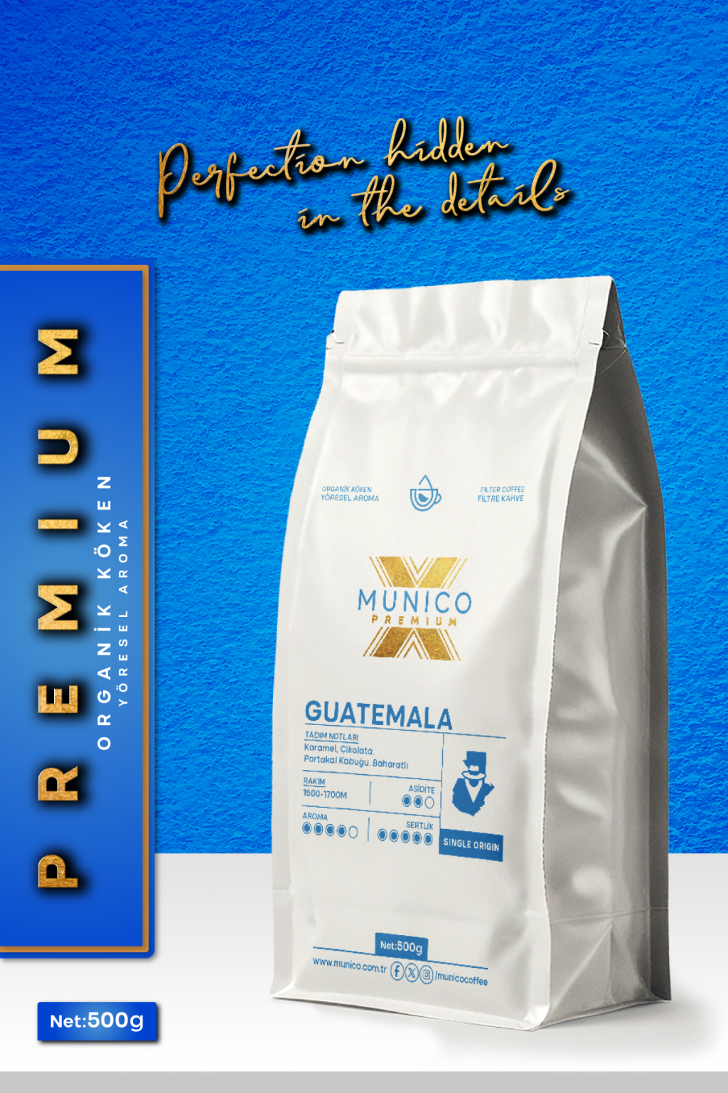 Munico Guatemala Öğütülmüş Filtre Kahve, Guatemala'nın 1500-1700 metre yükseklikteki seçkin bölgelerinden gelen çekirdeklerle hazırlanmıştır. Karamel, çikolata ve baharatlı notalarıyla kompleks ve dengeli bir tat profili sunar. Portakal kabuğu aromasıyla her fincanda unutulmaz bir kahve deneyimi yaşatır.