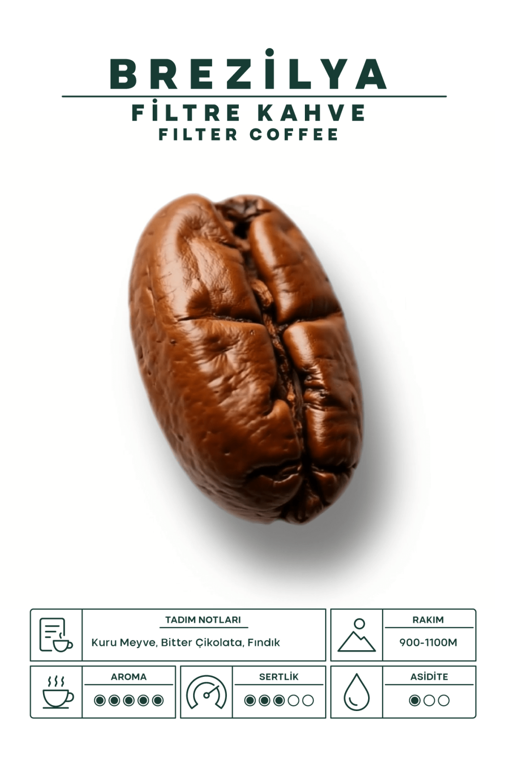 Munico Brezilya Öğütülmüş Filtre Kahve, Brezilya'nın 900-1100 metre yükseklikteki verimli topraklarından gelen seçkin çekirdeklerle hazırlanmıştır. Kuru meyve, bitter çikolata ve fındık notalarının dengeli uyumuyla klasik kahve severler için ideal bir deneyim sunar.