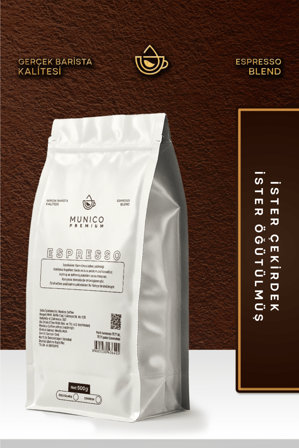 Munico Espresso Öğütülmüş Kahve, özenle seçilmiş çekirdekleriyle yoğun aroma ve tam gövdeli lezzet sunar. Yumuşak içimiyle midenizi rahatsız etmez, profesyonel espresso keyfini evinize taşır.