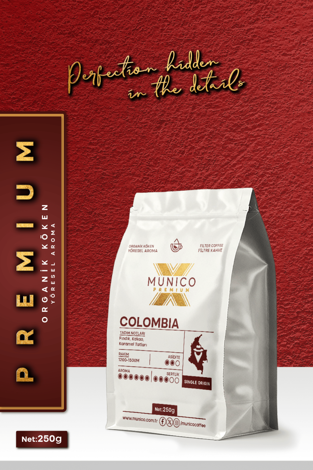 Munico X Premium Kolombiya Öğütülmüş Filtre Kahve 250g